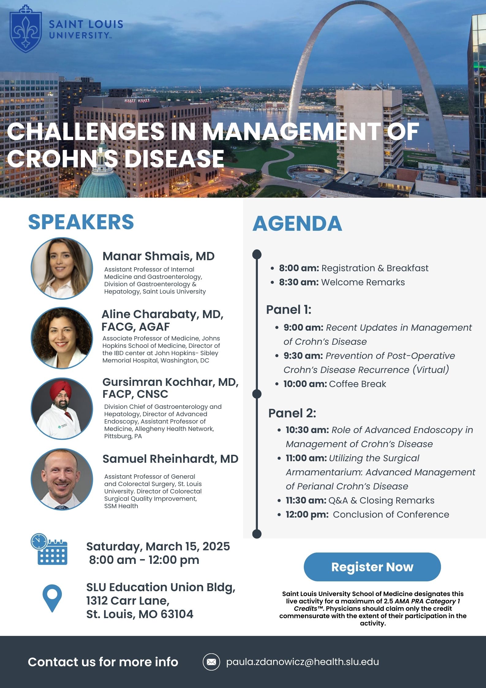 Saint Louis University School of Medicine designates this live activity for a maximum of 2.5 AMA PRA Category 1 Credits™. Physicians should only claim credit commensurate with the extent of their participation in the activity.